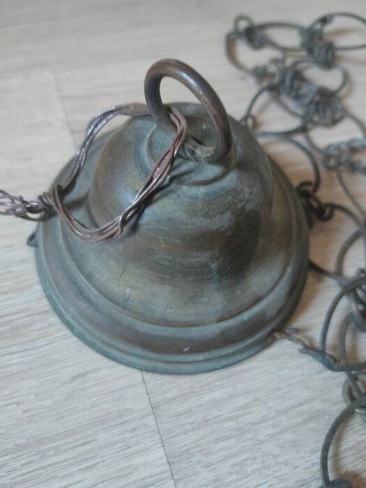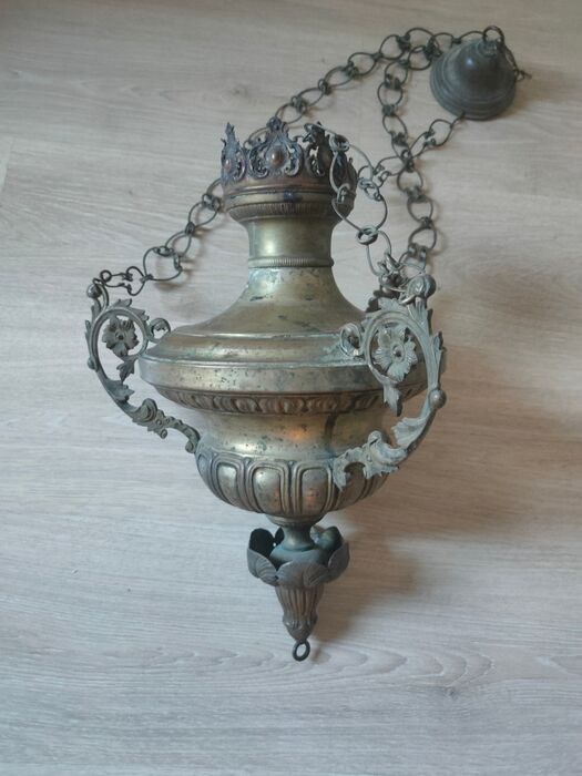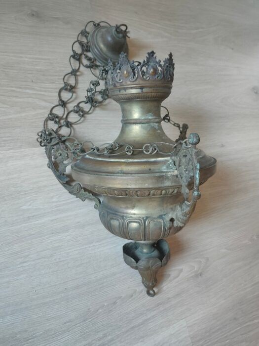Neoklassieke wierookvat uit de eerste helft van de 19e eeuw. Exemplaar in goede en gave staat. Lengte van de wierookvat 45 cm. Lengte hangend met de 3 kettingen 90cm.