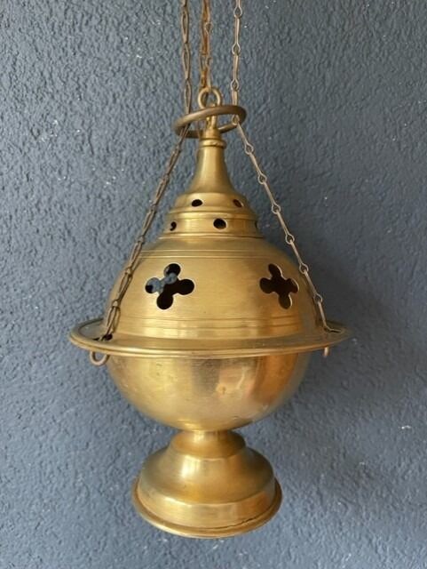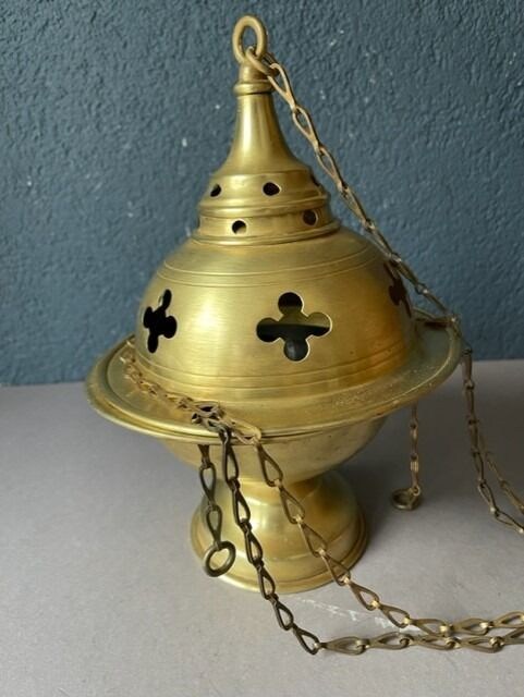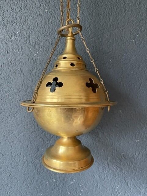 Groot Neo Gotische bronzen wierookvat; met originele binnenbak.