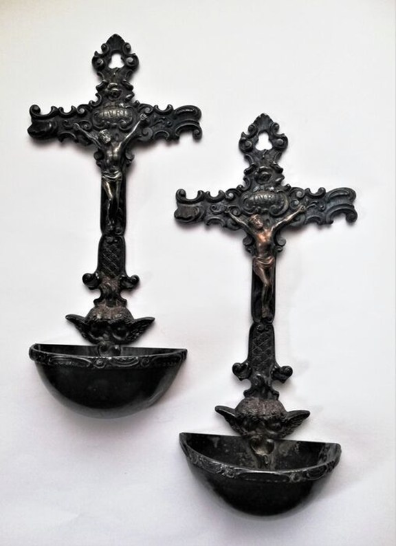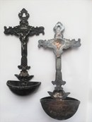 Antieke metalen wandkrukken met kruisbeeld