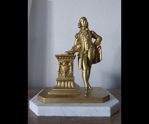 Beeld, elegante mannenfiguur in 18e eeuwse klederdracht - Zinklegering, goudkleurig gepatineerd metaal - Eerste helft 20e eeuw