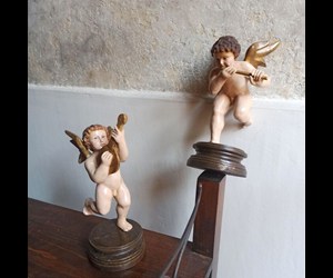 Beeld, Paar spelende engeltjes - 24 cm - Houtpulp - ca. 1930/1940