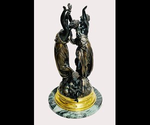 Estilo Claude Michel, Clodion - Groep, Groot beeld van muzen - 57 cm - Brons, Marmer - Eerste helft 20e eeuw