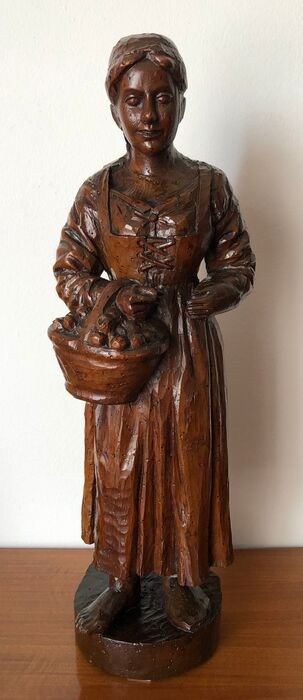 Sculptuur voorstellende een boerin in traditionele kleding met een fruitmand. Het handgemaakte werk, uiterst eenvoudig van uitvoering, slaagt erin om alle verwijzingen naar de oude landbouwtraditie krachtig tot uitdrukking te brengen.