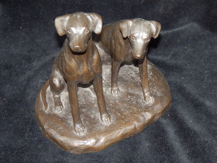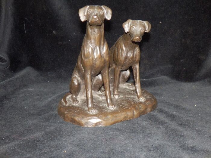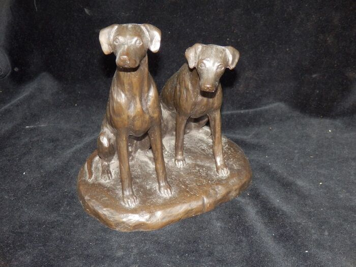 Fraai bronzen sculptuur van 2 Jachthonden - gesigneerd -ISTA