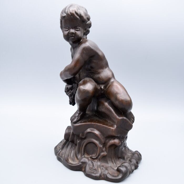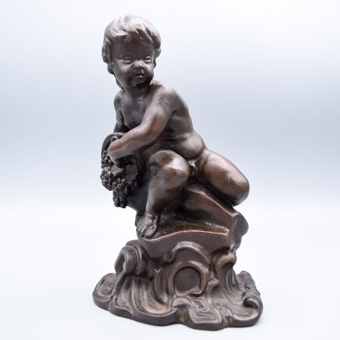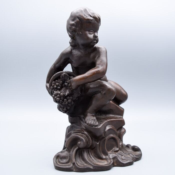 Bronzen beeld - Jongen/putto met druivenmand - Stuk gesigneerd, mogelijk Llucia OSLE (1880-1951).