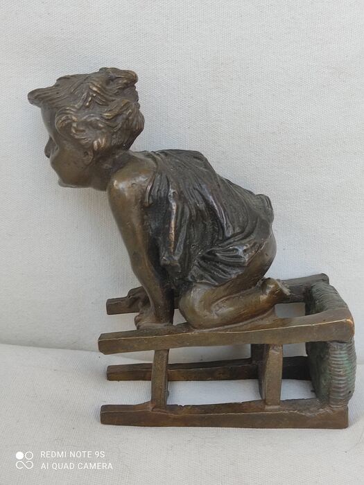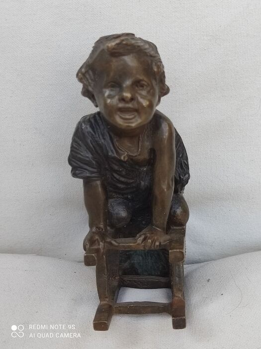 Hij was een kunstenaar die erin slaagde om "ziel" te geven aan zijn sculpturen, zoals in dit bronzen gietwerk dat een klein meisje voorstelt dat met een stoel speelt, een werk van grote expressiviteit. Met handtekening op de rand van de stoel.