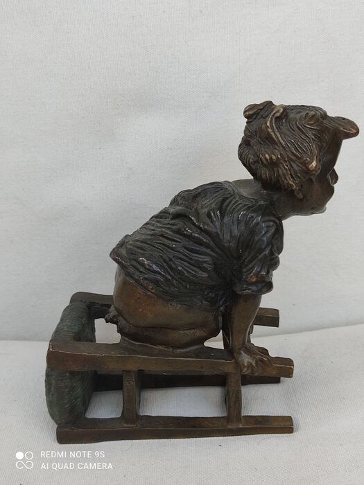 Prachtig bronzen beeld naar model van beeldhouwer en beeldend kunstenares Joan Clara' y Aiats nt. in Olot(es) in 1875 en stierf in Parijs in 1958, tweede helft 20e eeuw.