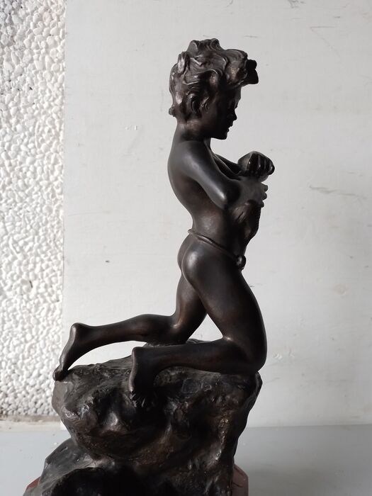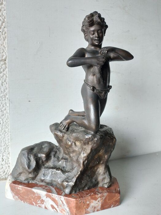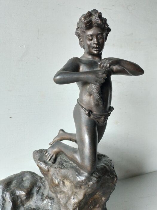Verloren was bronzen beeld, voorstellende een jonge visser op een rots, bijzonder vakmanschap van de Napolitaanse school, gesigneerd onder V.Cinque. maat zoals op de foto, 33cm