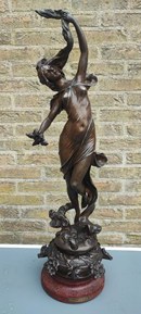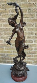 Het beeld is gemaakt van spelter op een houten voet, in zeer goede staat.