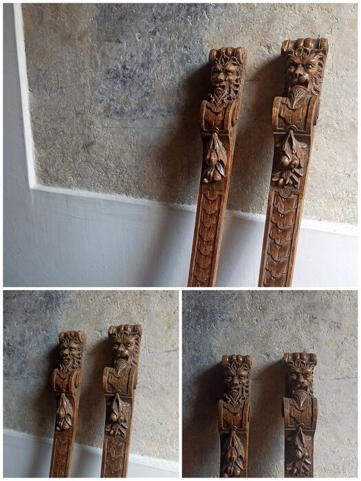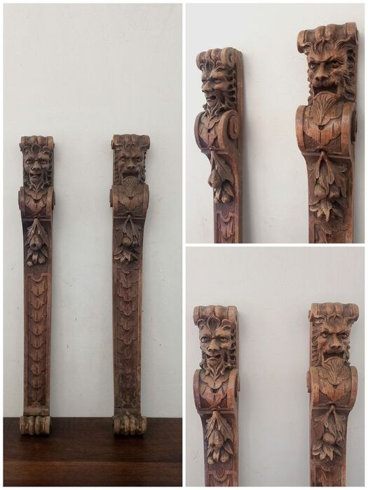 Paar pilasters met saters/demonen, oorspronkelijk onderdeel van een meubel