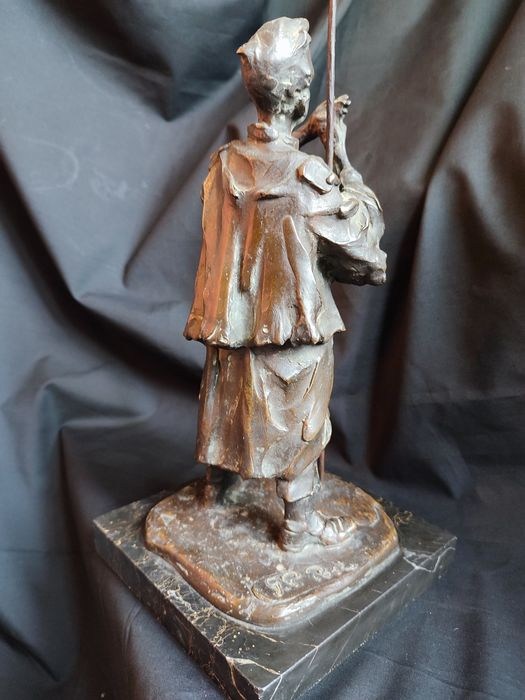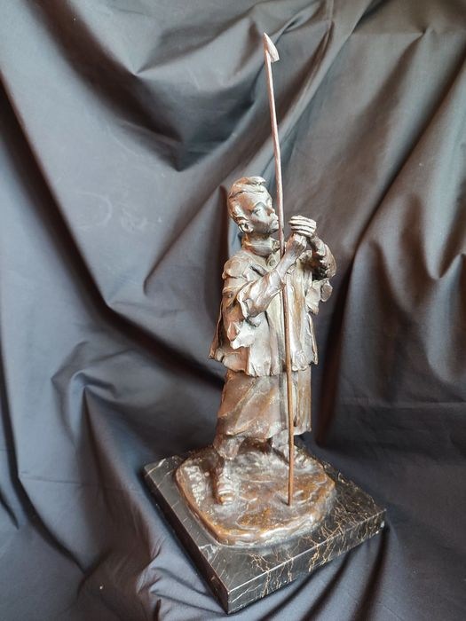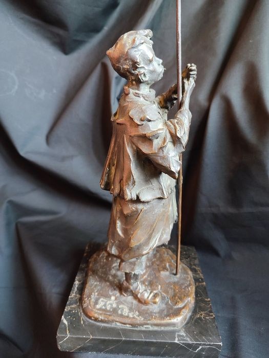 Sculptuur van een jonge priester of novice die een sigaret opsteekt. Het gepatineerde brons is uit de jaren 1940, gemaakt met verloren was door de Italiaanse beeldhouwer en schilder Pietro Girardi bekend als Posi (1894 -1971) in de Lombardische school scapigliatura-stijl. Referentie: (Commandeert ons, geïllustreerd woordenboek van hedendaagse Italiaanse schilders volume IV ed. 1974). In goede staat, totale hoogte 37 cm inclusief voet en paal voor het doven van kaarsen in de kerk. Signatuur op de voet en gietersmerk, een uniek en mooi onderwerp. Zorgvuldige en aangetekende verzending.