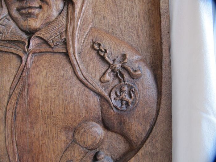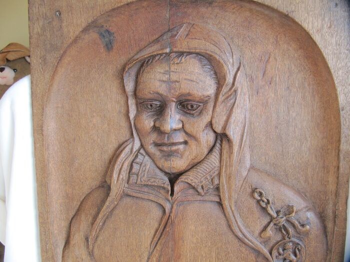 Een zeer mooie eikenhouten plaquette met een portret van de vrouwelijke heldin Kenau Simons Hasselaer, vervaardigd in de 19e eeuw, geïnspireerd op het schilderij in het Rijksmuseum.