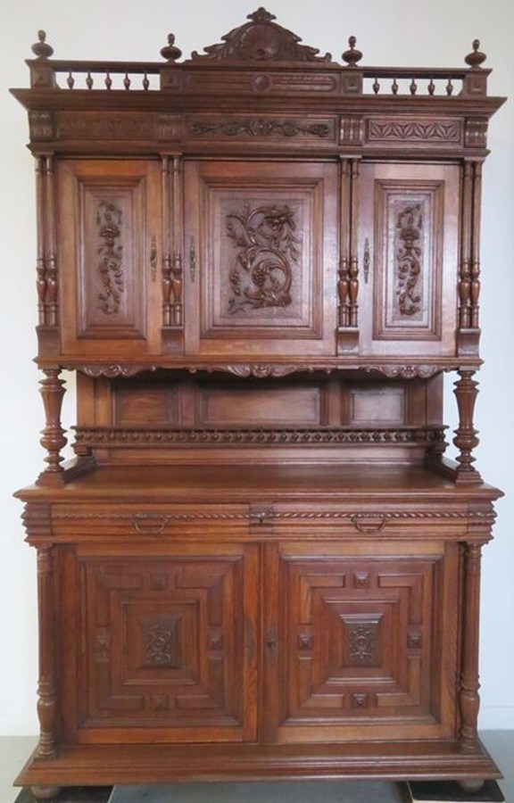 Op de voorzijde van deze kast zijn maar liefst vijf hoornen des overvloeds afgebeeld.