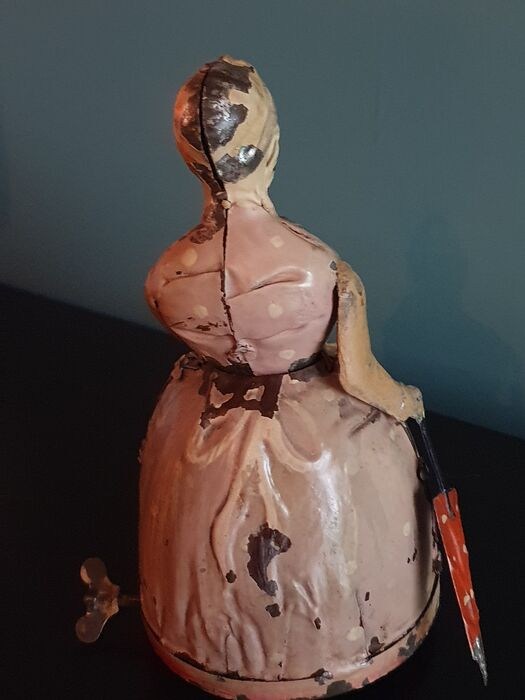 Deze originele zeer leuke vroege dame van de firma Gunthermann verkeert in een bespeelde maar goed werkende conditie, het gezicht van de dame is nog zeer netjes.