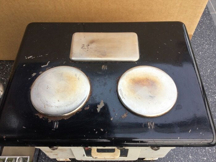 Prachtig oud fornuis met 3 kookplaten en oven.
