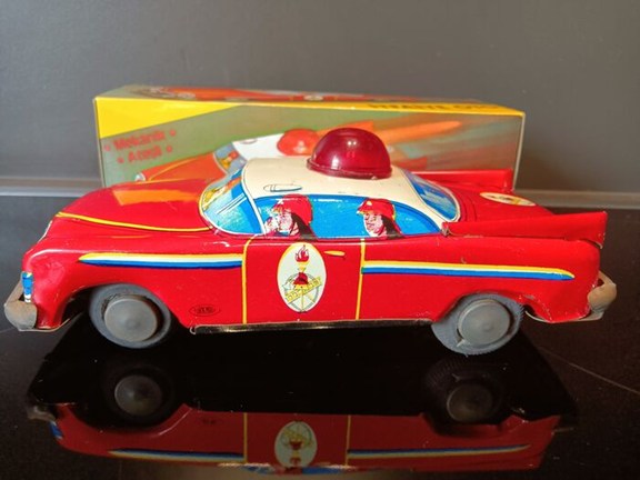U bied hier op een moeilijk te vinden blikken brandweerwagen met originele verpakking uit 1970.