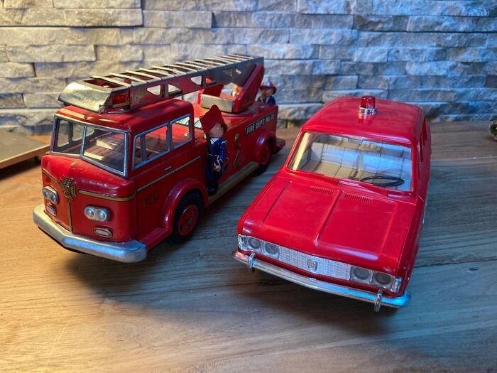 Gepresenteerd een vrachtwagen en een brandweerauto in zeer goede staat van instandhouding.