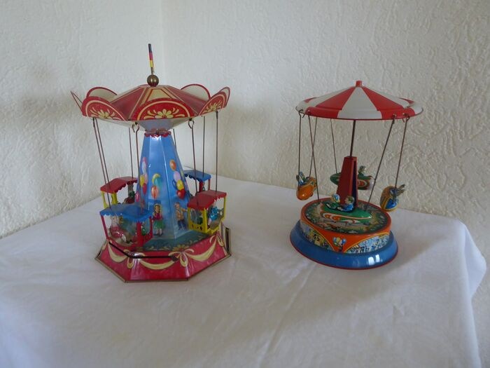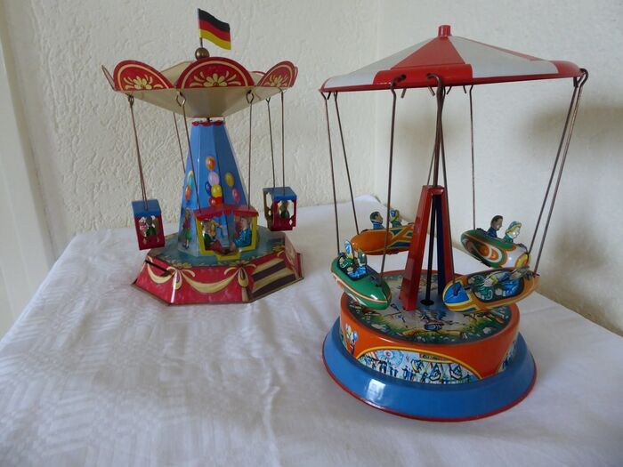 Twee draaimolens werkend en in nieuwstaat, Two merry-go-rounds working and in mint condition