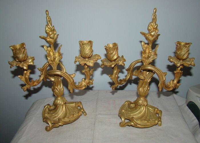 Kandelaar (2) - Lodewijk XVI-stijl - Brons - Begin 20e eeuw