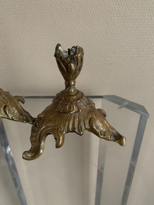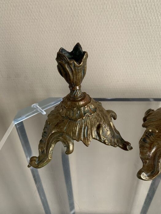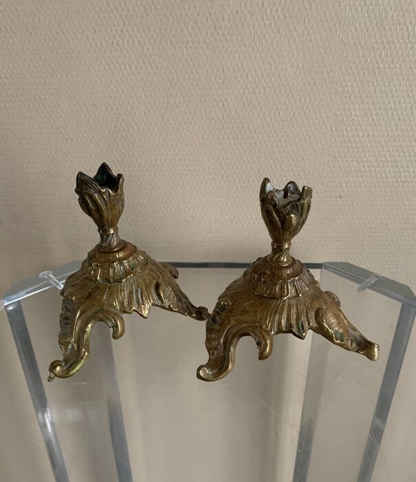 Mooi klein paar Louis XV kandelaars in verguld brons.