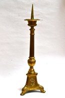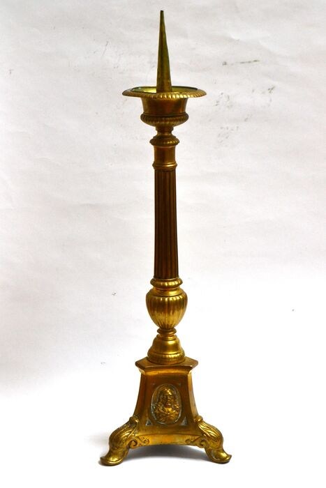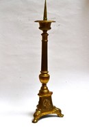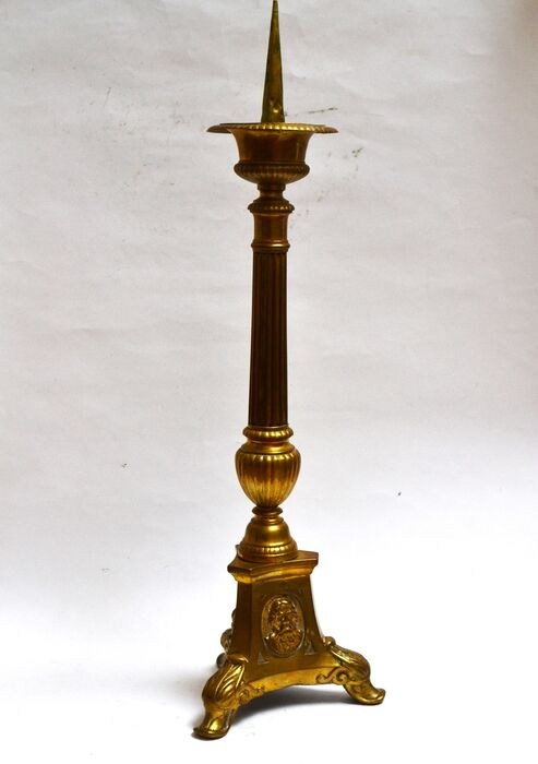 Grote antieke koperen penkandelaar uit een kerk. Frankrijk, tweede helft 19e eeuw. 52cm hoog.