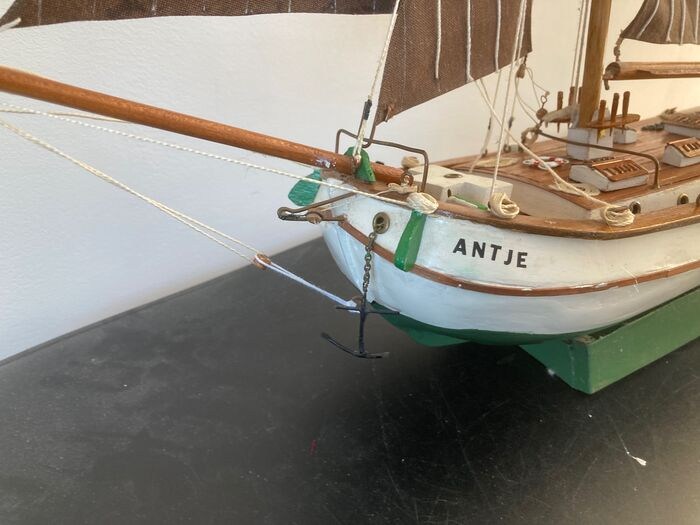 Zie de fraaie details op het schip hij is ruim 50 cm lang en staat op een standaard.