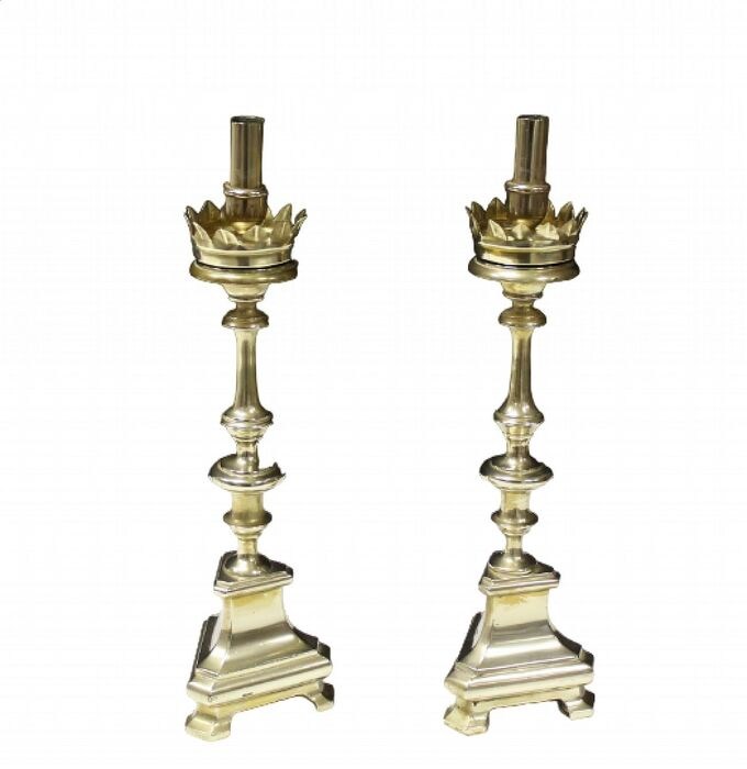 Paar koperen kandelaars, begin 20e eeuw. In goede staat, zijn gepolijst. Italiaans product, afmetingen 38 x 10 x 10 cm, gewicht van het paar ca. 3,7 kg. De producten worden professioneel verpakt en verzonden via een koeriersdienst. Wij zijn verantwoordelijk tot het bij de klant aankomt.