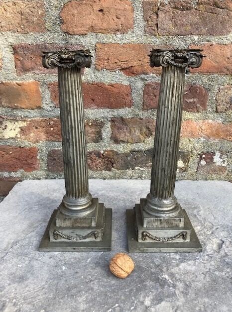 stel antiek tinnen empire kandelaars