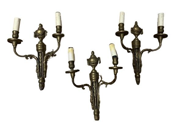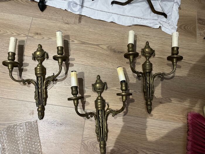 Wandkandelaar (3) - Lodewijk XVI-stijl - Brons (verguld) - Eerste helft 20e eeuw